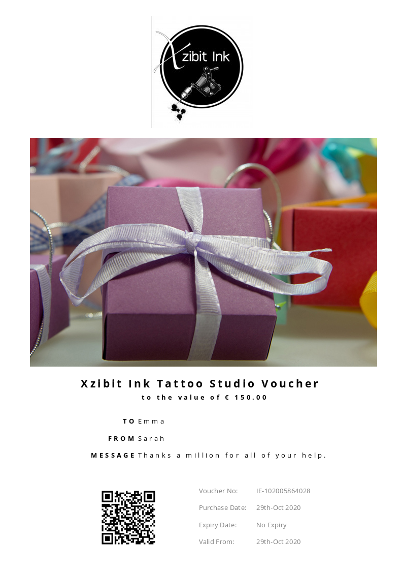 Xzibit Ink Tattoo Studio allows you to purchase instantly printable gift vouchers, special offers and tickets using the Voucher Connect platform.